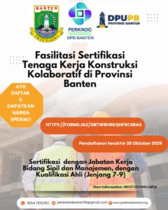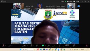 Banten, 28 November 2025 — Persatuan Konsultan Indonesia (PERKINDO) DPD Banten bekerja sama dengan Dinas Pekerjaan Umum dan Penataan Ruang (DPUPR) Provinsi Banten telah menyelenggarakan kegiatan Fasilitasi Sertifikasi Tenaga Kerja Konstruksi Kolaboratif bagi tenaga ahli konstruksi di wilayah Banten. Kegiatan ini berlangsung secara daring melalui Zoom dan diikuti oleh peserta dari berbagai bidang keahlian, khususnya jabatan kerja di bidang sipil dan manajemen (Jenjang Ahli 7–9).